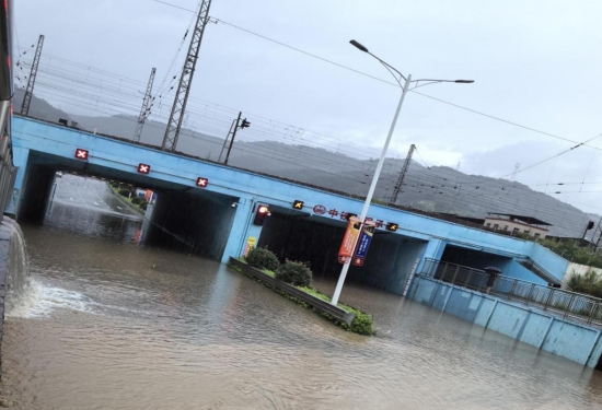 經過現場察看,由于短時間降雨量太大,龍津河水位暴漲高于通道出口頂標高,河水倒灌至下穿通道導致交通中斷下穿通道水泵房三臺水泵全部啟動抽水也無法滿足排水要求。公司防汛小組到達現場后,連夜組織人員拉好警戒線,設置警示標志,防止車輛進入下穿通道,并調度4輛應急車輛及時排水并清洗路面;同時,提前與鐵路部門、交警部門聯系,暫時封閉該段線路。經過6小時的不斷抽水,路面已基本暢通,搶險過程未發生任何險情和人員傷亡。