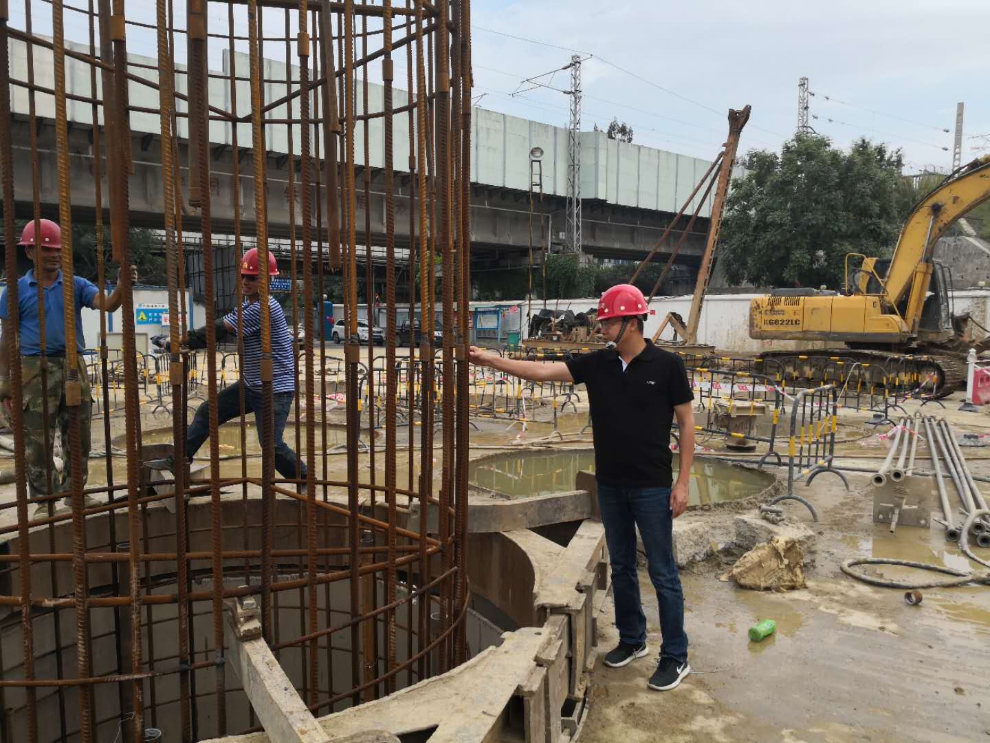 427日,在龍巖火車站片區(qū)路網(wǎng)項(xiàng)目工地,犀牛路二期正在進(jìn)行樁基、承臺(tái)和立柱施工,站前高架橋正在進(jìn)行墩柱和混凝土現(xiàn)澆梁施工,一派熱火朝天的建設(shè)場(chǎng)景39歲的龍巖國(guó)資企業(yè)干部孔華剛剛榮膺2018年“福建省勞動(dòng)模范”,從福州開(kāi)完表彰會(huì)載譽(yù)歸來(lái)的顧不上休息,馬不停蹄地深入站前高架橋和犀牛路二期項(xiàng)目一線,檢查安全文明施工情況,督促項(xiàng)目施工進(jìn)度。